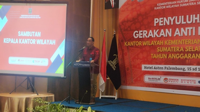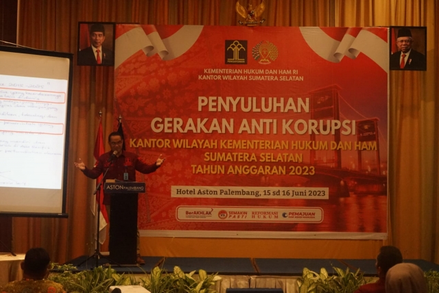 Palembang - Kanwil Kemenkumham Sumsel mengadakan penyuluhan gerakan antikorupsi, Kamis (15/6), guna memberikan pemahaman mendalam mengenai ruang lingkup korupsi, bahaya, dan bagaimana upaya pencegahannya.