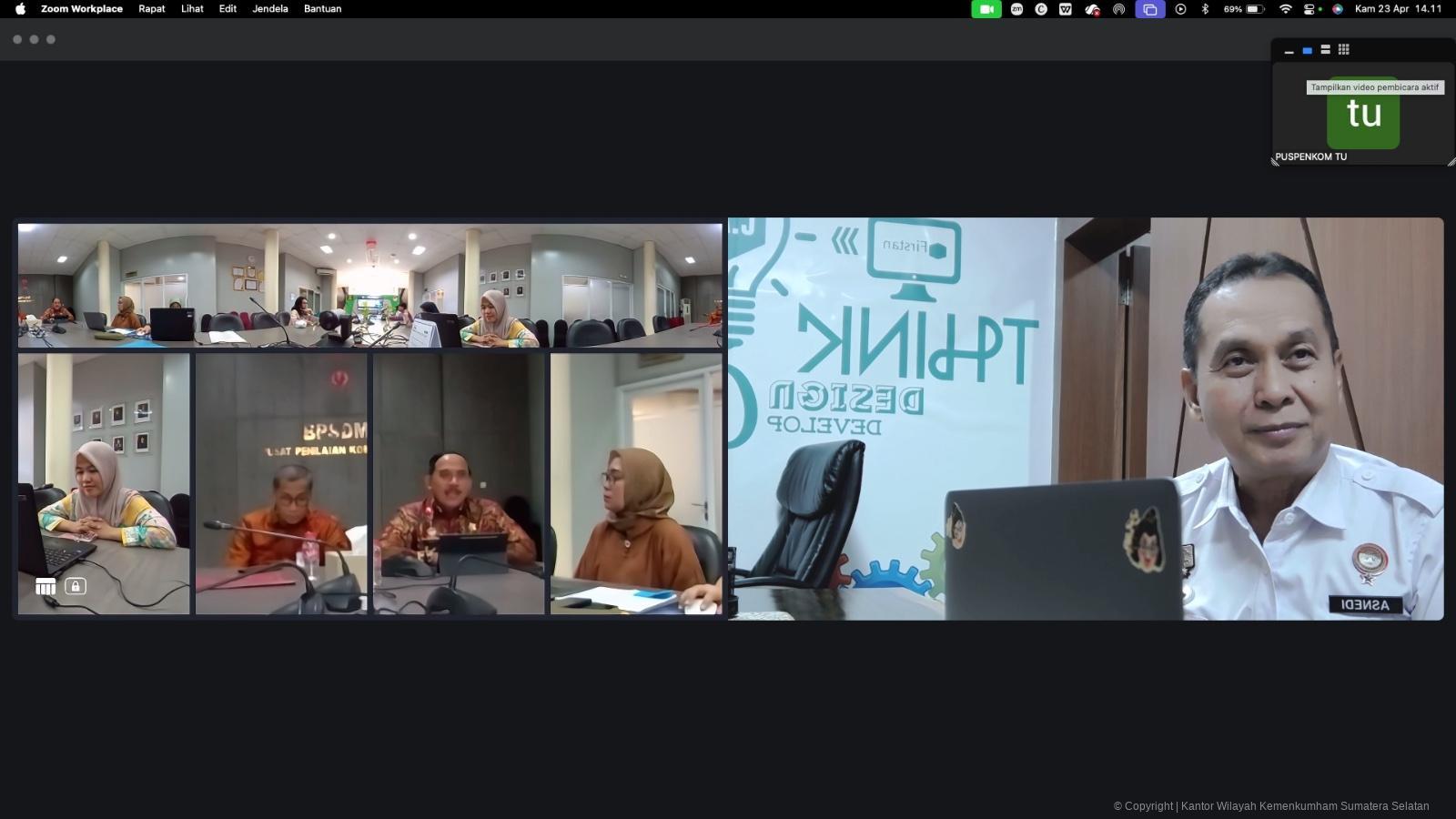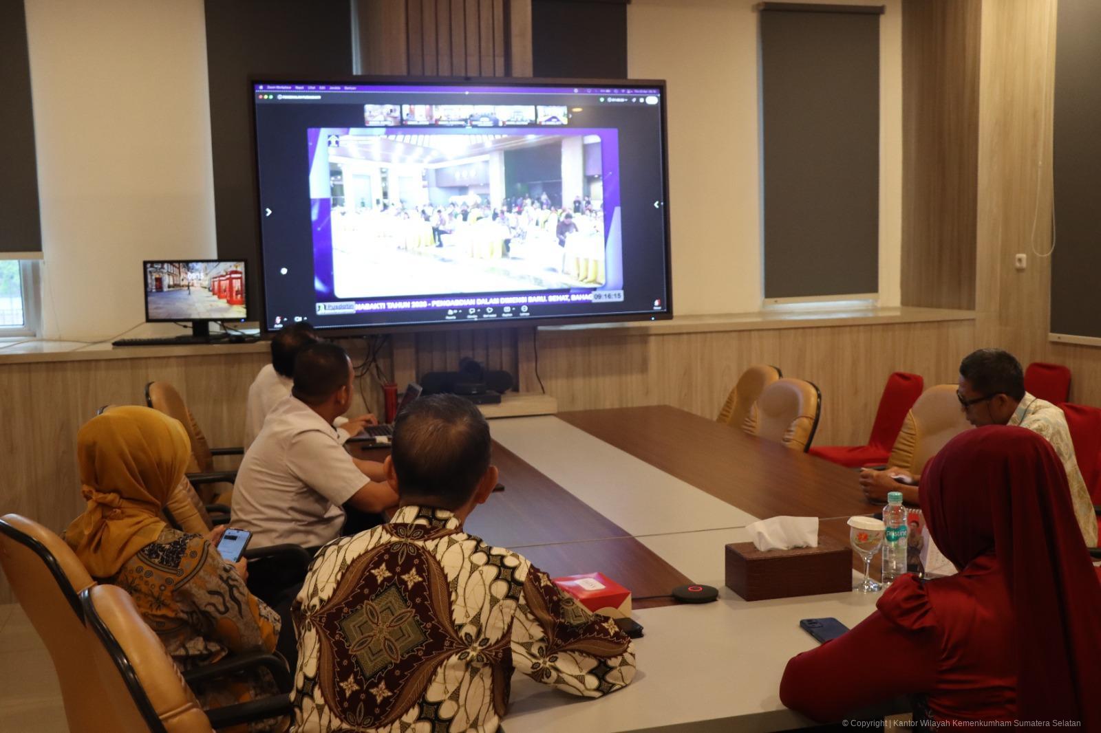 Wilayah Kementerian Hukum Sumatera Selatan menghadiri Pembukaan Penilaian Kompetensi PDJL Analis Anggaran dan Kenaikan Jenjang Pranata Komputer TA 2026 yang dilaksanakan secara virtual melalui Zoom Meeting, Rabu (3/3/2026). Kegiatan tersebut diikuti dari Ruang Teleconference Kanwil Kemenkum Sumsel.